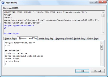 Step 1: The first step is to insert some code into the <head> section of your page. This code represents the style of the ticker. In WYSIWYG Web Builder we select: