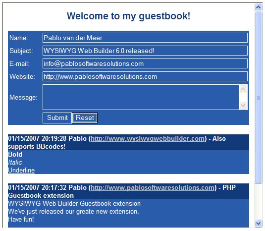Easily change text strings, fonts, colors and other properties of the guestbook.
